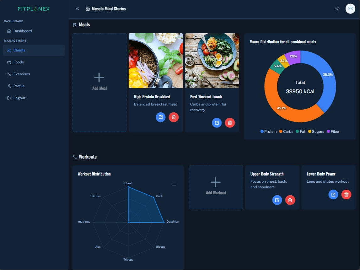 - Create tailored nutrition plans using a built-in food database, reusable templates, and real-time calorie and macro tracking.